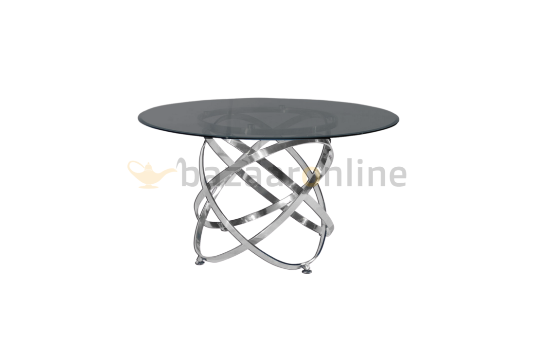 U heeft de keuze uit 3 verschillende tafels, elk met hun eigen uitstraling. Zo kunt u kiezen uit een eetkamertafel en salontafel die het beste past bij uw stijl. Alle drie hebben ze sierlijk ronde vormen en een stainless steel onderstel van in elkaar verweven cirkels. Heel bijzonder!