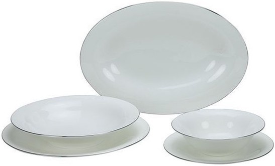 Serviesset 25-delig in de kleur wit met goud, voor 6 personen. Uit de Drancy lijn. Speciaal hoogwaardige kwaliteit porselein servies van het merk Bricard....