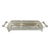 Deze dienblad is een stijlvolle en functionele toevoeging aan je interieur. Met zijn rechthoekige vorm en verfijnde zilveren afwerking biedt dit dienblad een perfecte mix van elegantie en praktische bruikbaarheid.