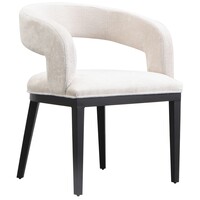 De Azure eetkamerstoel belichaamt een elegant design met zijn unieke, gebogen armleuningen en een zachte, beige bekleding die comfort en luxe uitstraalt....