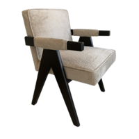 De stoel Sandy kenmerkt zich door haar strakke lijnen en moderne vormgeving met een knipoog naar mid-century design. De armleuningen zijn voorzien van een slim, minimalistisch detail dat bijdraagt aan de strakke uitstraling. Het stevige frame van de stoel is afgewerkt met een diepe, zwarte kleur die prachtig contrasteert met de lichte stoffen, waardoor de stoel een opvallende verschijning is in elke kamer.