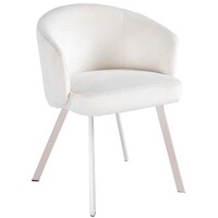 De Yuka is ontworpen in de populaire Japandi-stijl: rustig, minimalistisch en met zachte tinten. Het frame is gemaakt van metaal in een subtiele beige kleur. Voor de stoffering heb je de keuze uit twee varianten: licht beige of warm beige. Handig: omdat de stoel geen armleuningen heeft, schuif je hem na het eten moeiteloos onder vrijwel elke tafel. Dat houdt de loopruimte lekker vrij.