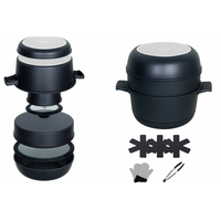 Met de meegeleverde accessoires, zoals deksels, pannenbeschermers, siliconen handschoenen en een vleestang, heb je meteen alles in huis om veelzijdig te koken — van bakken en grillen tot stomen en sudderen.