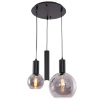 Hanglamp Aura - Zwart - 3 lichts - Rond - Smoke glas