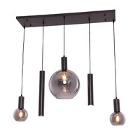 Hanglamp Aura - Zwart - 5 lichts - Rechthoekig - Smoke glas