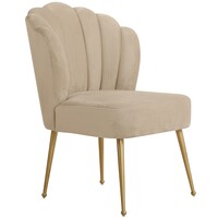 Deze unieke stoelen in schelpvorm bestaan uit een comfortabele en elegante fauteuil uitgevoerd in fluweel. De look van beide onderdelen wordt afgemaakt met kwalitatieve RVS brushed poten....